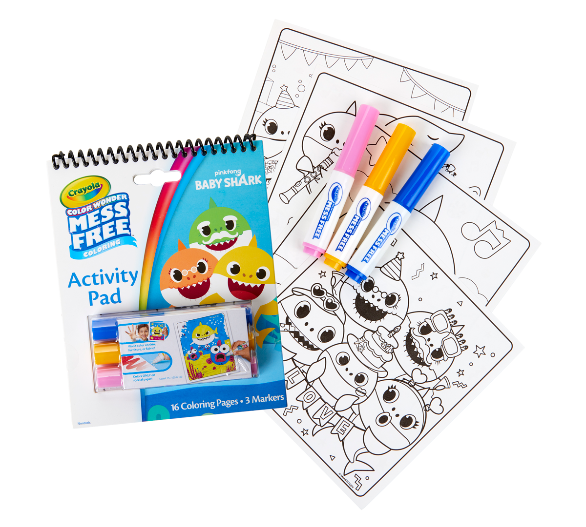 Crayola Baby Shark 16pg Color Wonder Travel Activity Pad With 3 Color Wonder Markers In 2021 Color Wonder Shark Coloring Pages Crayola